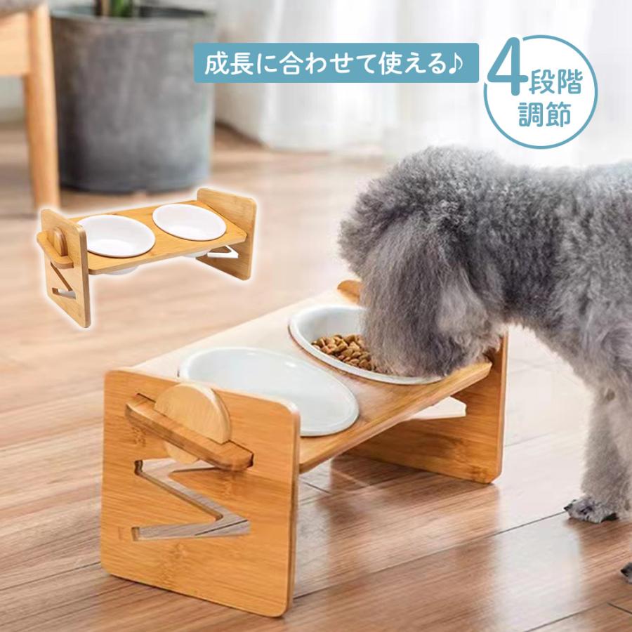 ペット食器台 フードボウルスタンド エサ皿 2枚 犬 猫 フードボウル 餌皿 食器 陶器 餌 エサ 傾斜 食べやすい ペット 猫用食器