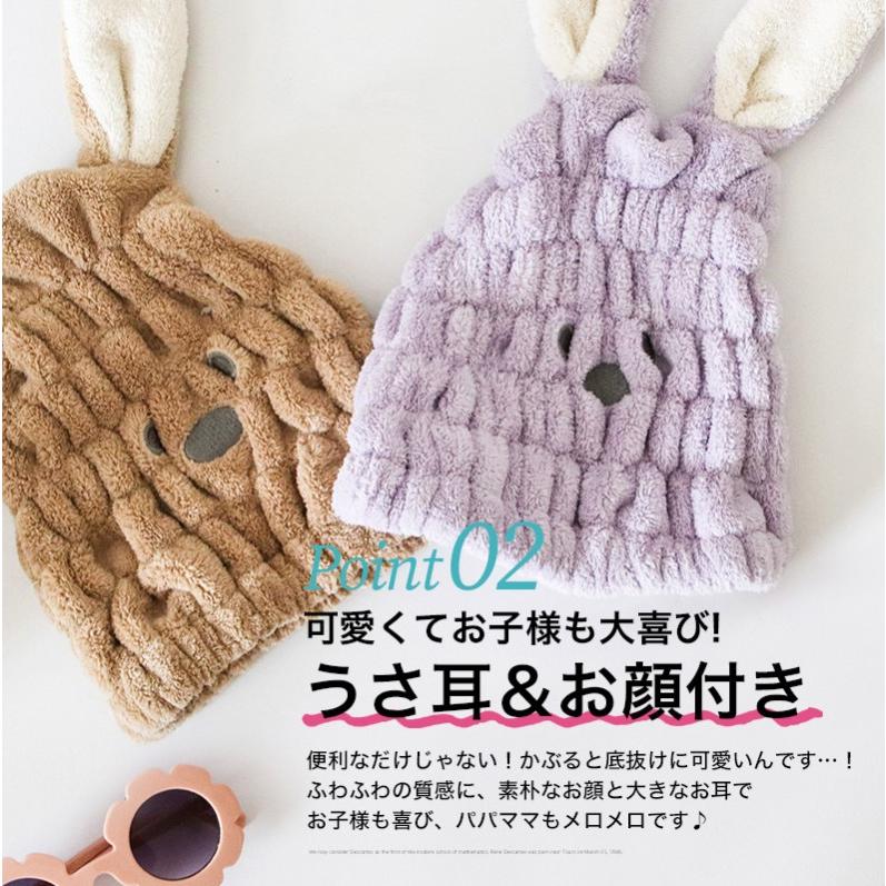 かわいいうさぎの形のヘアタオル!かわいいデザインでタオルドライが楽しくなる!これを巻いて吸水しておけば髪を乾かす時間が短縮!時短でかわいい吸水ヘアキャップです。◆サイズ35cm×50cm◆素材ポリエステル84.5%ナイロン15.5%商品到着時、うさぎ・くまの目が見えていないケースがございます。圧縮時に隠れてしまっている可能性が高い為開封をしてご確認をいただければ幸いでございます。※開封後、不良が発覚した際はご対応をさせていただきます為ご安心くださいませ。