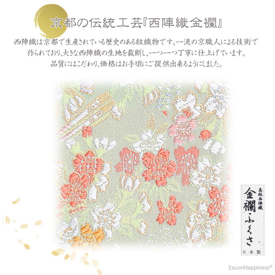素材 素材:「表地」西陣織金襴、「裏地」合成繊維。