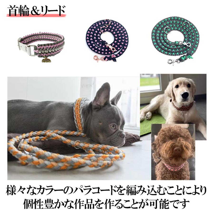 handmade.amaneからパラコードが新登場ブレスレットやストラップスマホショルダーなどのアクセサリーはもちろんリードや首輪など犬や猫などペット用のアクセサリーの作成にもパラコードを使った編み物で普段使用しているものをカスタマイズ優れた耐久性と柔軟性があるのでアウトドアではガイロープとしてテントに使用はもちろんナイフ持ち手や、カバンの取っ手など普段使用している物もカスタマイズできます爆買