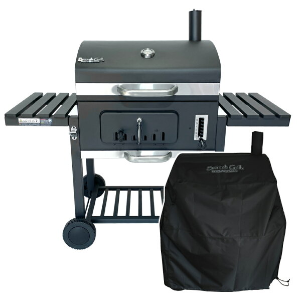 | 付属品 | 専用グリルカバー 鋳物鉄焼網(2枚) 430度温度計 ステンレスウォームラック 折り畳み可能な左右サイドテーブル (ツール用フック付き) 移動が簡単なタイヤ(2輪) 栓抜き 煙突