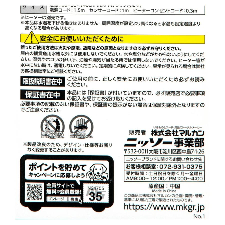 メーカー:ニッソー アクアリウム用品 _aqua sfset アクア用品 ヒーター 保温用品 サーモスタット ニッソー シーパレックス 600 NEO 保温器具 熱帯魚 金魚 保温 冬 温度管理 サーモ 600W heater_nisso 4975637247059 電子式 温度調節器 プロテクトヒーター R−500W 4975637246649 クアリウム用品 海水魚 マルカン 空焚き防止機能 交換ヒーター エコタイプ 水温管理 サーモスタット用ヒーター 交換用 120cm水槽 90cm水槽 900 1200heater_nisso R500W 各社共通 PROTECT HEATER コンパクト 水槽 アクアリウム 水槽用ヒーター 寒さ対策 20241015 kak y24m10 ngwordCHK_OK