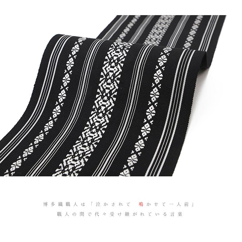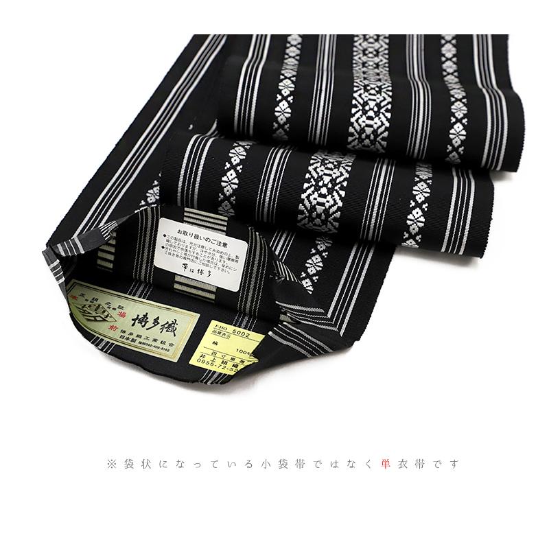 浴衣帯 ゆかた帯 半幅帯 博多織 博多帯 長尺 正絹 浴衣 黒地 白 献上 独鈷 本場筑前博多織 細帯 単衣帯 単衣 四寸 井上絹織 金証紙 日本製 夏祭り 花火大会粋 かっこいい おしゃれ レトロ No.10-4882
