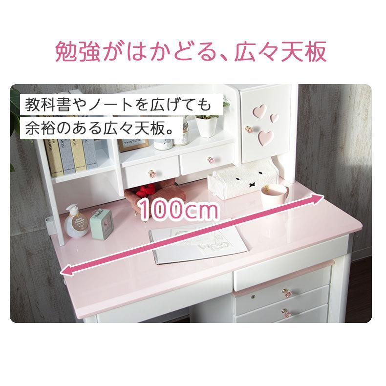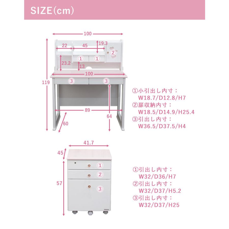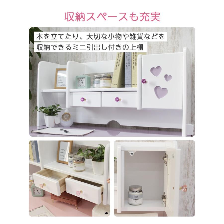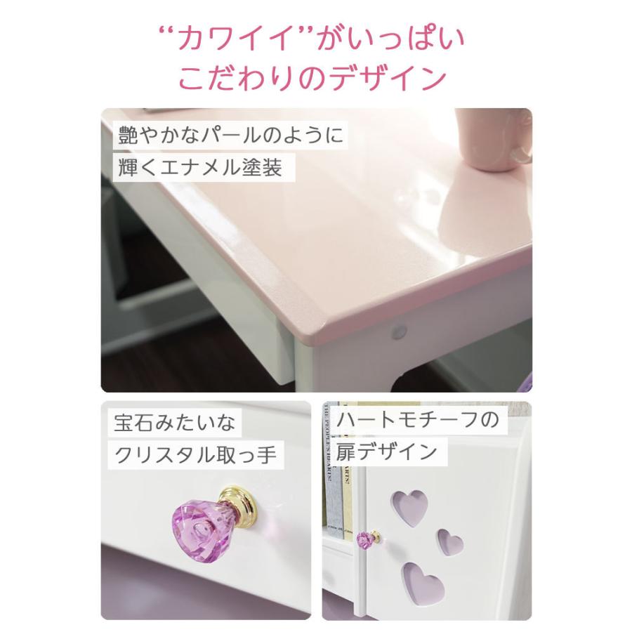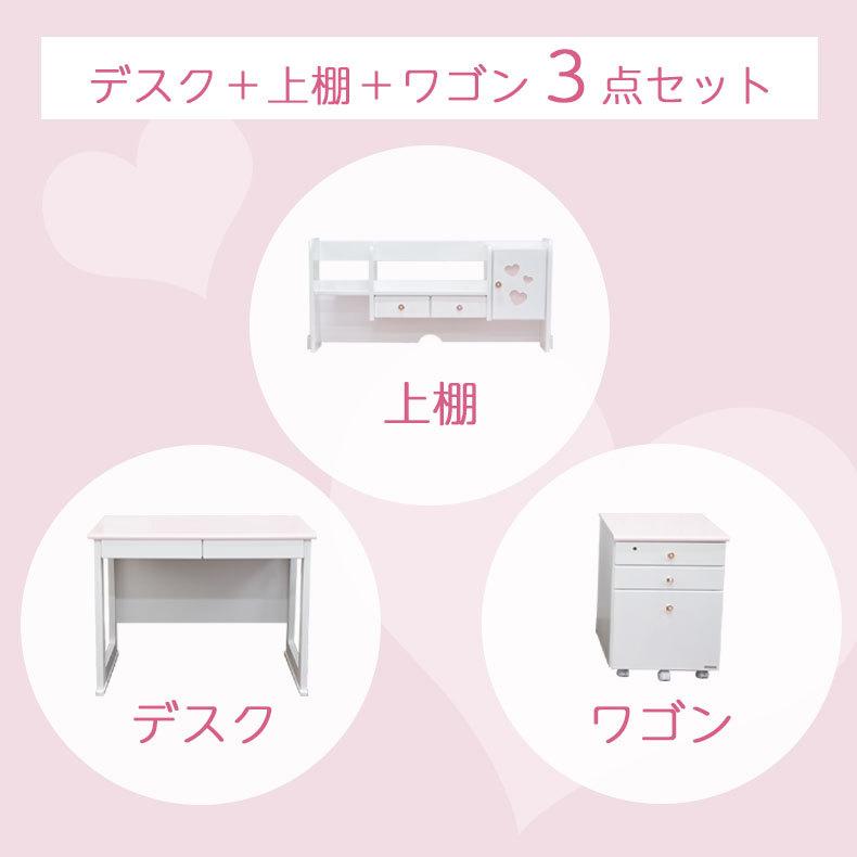 女の子の夢がつまったガーリーな学習デスク3点セット。デスク、上棚、ワゴンの3点セット。