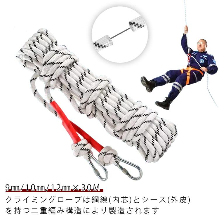 補助ロープ クライミングロープ フックボルダリング 30m 9mm 登山 アウトドア 10mm クライミング 多目的ロープ ザイル カラビナ ガイロー