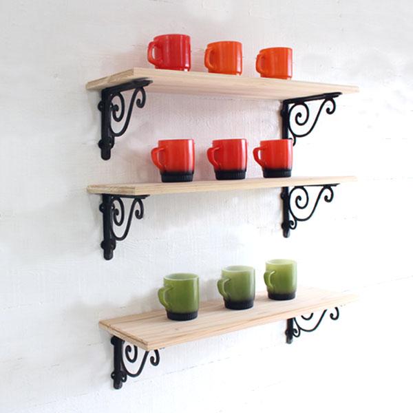 お部屋の空いた壁面にブラケットを取り付けその上に棚板をのせるだけで、