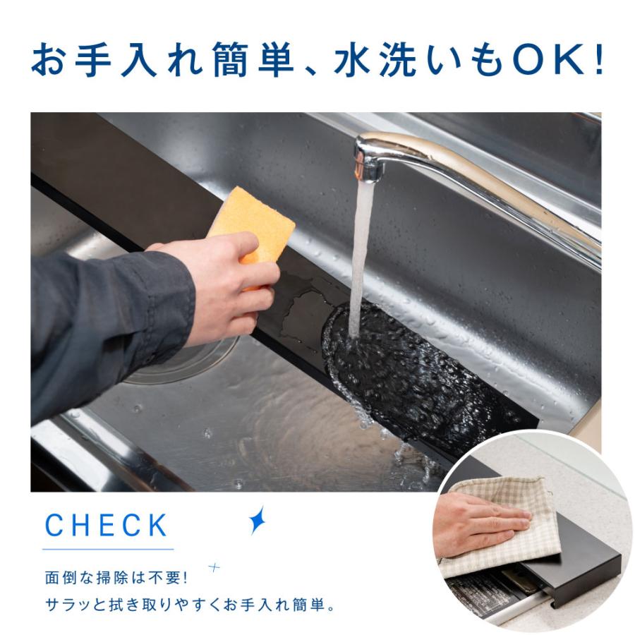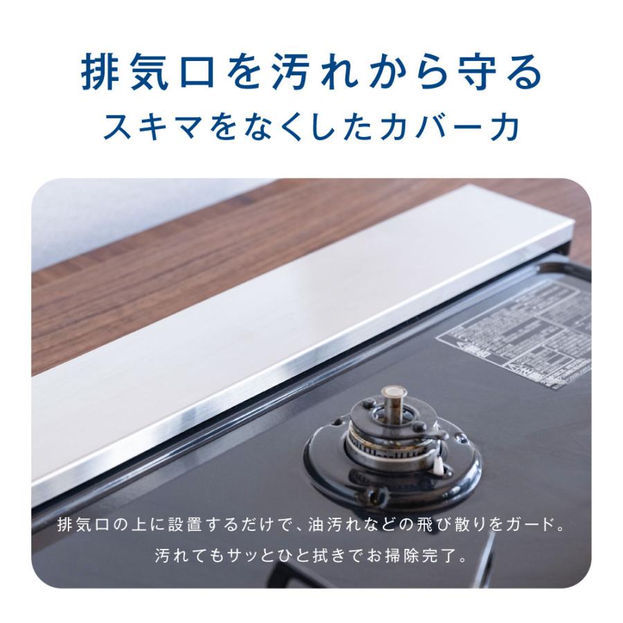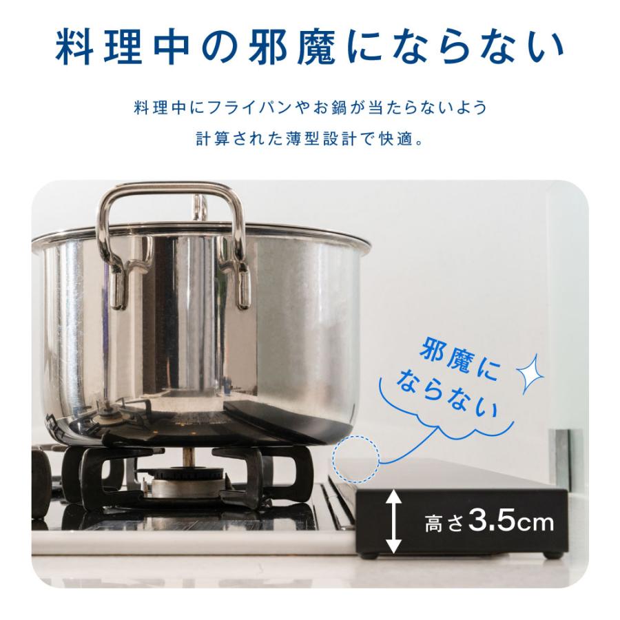 【耐荷重UP】排気口の上に設置するだけで汚れなどの飛び散りをガード。 汚れてもサッとひと拭きでお掃除完了。耐荷重10kgを実現。重たい鍋を乗せてもたわむことはありません。