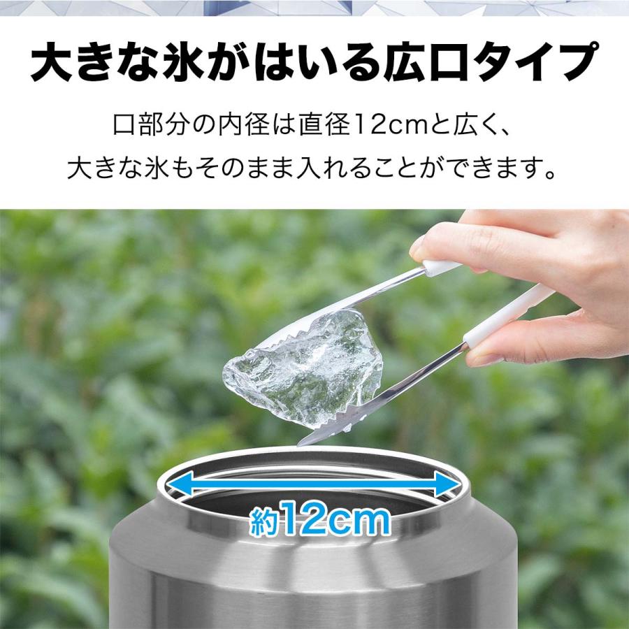 口部分の内径は直径12cmと広く、大きな氷もそのまま入れることができます。手を入れて中までしっかり洗うことができ、清潔にお使いいただけます。また口部分が広いのでシャンパンクーラーとしても使用できます。