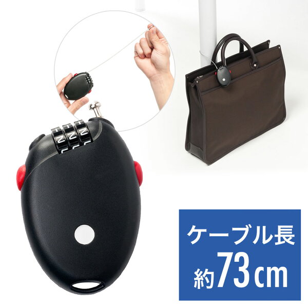 サンワダイレクト 巻き取り式 ワイヤーロック 盗難防止 ダイヤル錠 3桁 ケーブル長73cm スーツケース/自転車/ベビーカー/旅行 ブラック 200-SL042BK