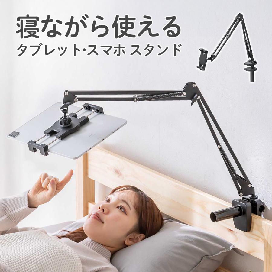 タブレット アーム スタンド 寝ながら ごろ寝 スマホ アームスタンド クランプ 固定 設置 取付 3関節 角度調整 調整 ベッドサイド 360度回転 100-LATAB021