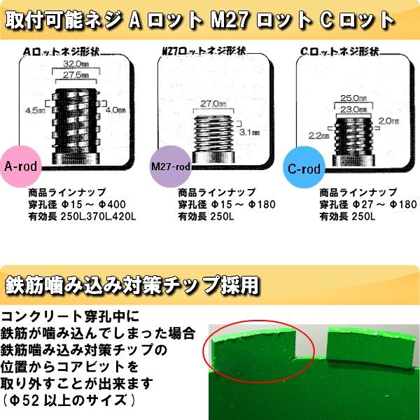 【送料無料】Aロット M27ロット Cロット 穴あけ深さ250mm 370mm 420mm 穴あけサイズΦ160(mm) チップ高9.0mm チップ厚3.3mm 湿式 コアビット(有効長370mm、420mmはAロットのみ取り扱いがございます。)鉄筋噛み込み対策チップ採用湿式 コンクリート、鉄筋コンクリート、アスファルト電気、ガス、水道、空調の配管工事、道路、橋脚等の各種土木工事に
