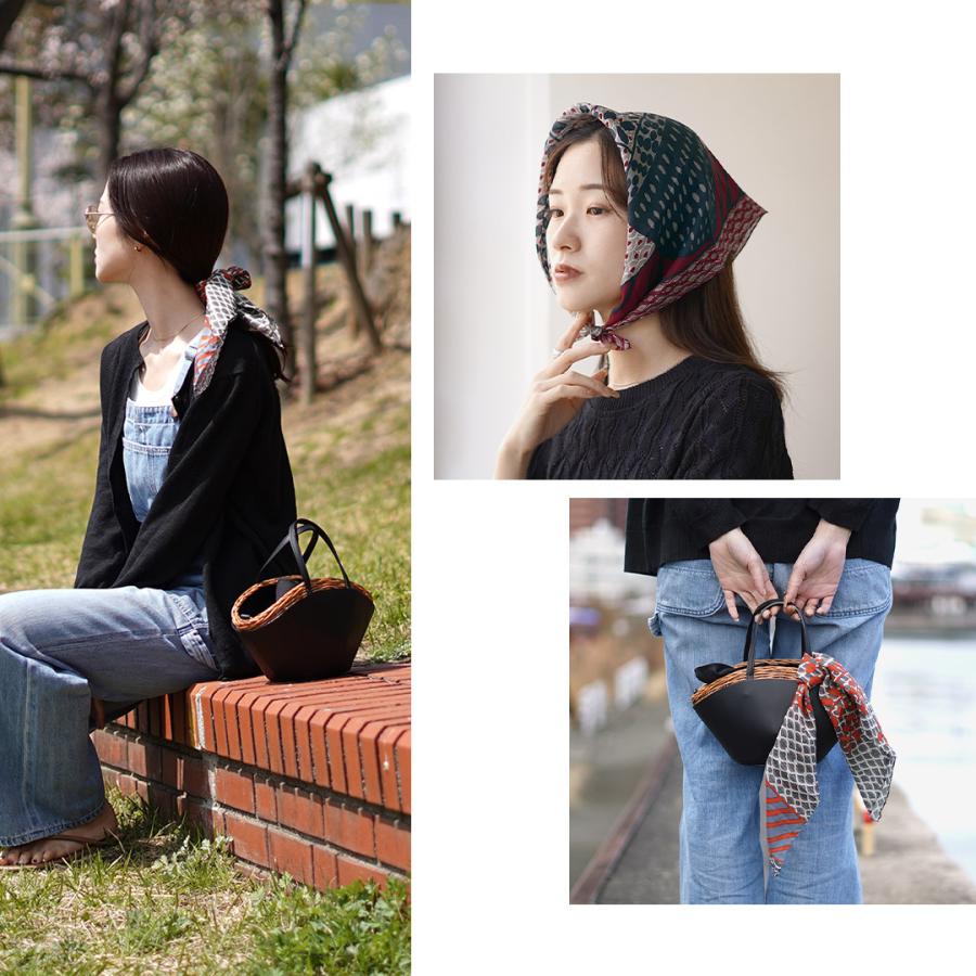 ■個性が光る、アートな1枚表情豊かなデザインが目を引く、ハンドメイドのシルクスカーフです。上質なシルクのなめらかな肌ざわりと、職人の丁寧な手仕事による美しい仕上がりが魅力。首元に巻くだけでなく、バッグの持ち手やヘアアレンジに取り入れることもでき、自由にお楽しみいただけます。マッチボックスのような可愛いパッケージ付きで、ギフトにもおすすめのアイテムです。