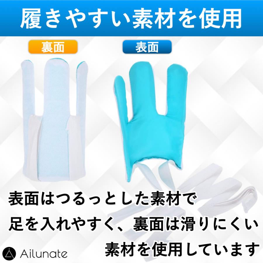 3、ヒモを引っ張り靴下を履きます