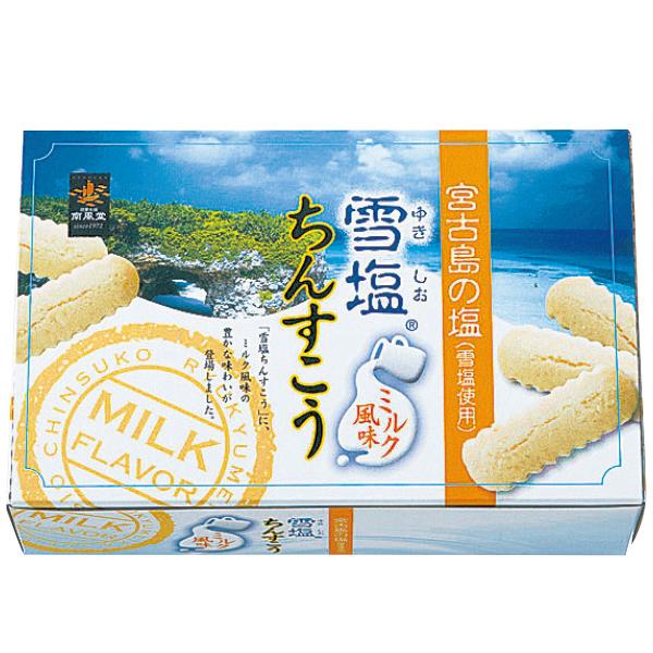 沖縄の伝統菓子「ちんすこう」と、沖縄の自然が育んだ宮古島の雪塩を組み合わせた逸品です。是程良いミルクの風味が好評。甘いもの好きの女性や若い人に人気です。