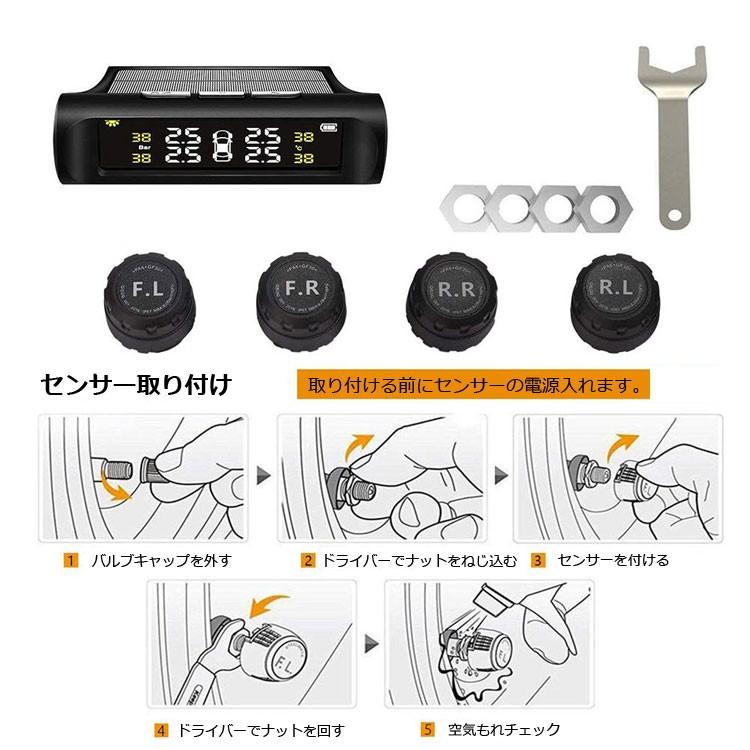 ★タイヤの空気圧だけでなくタイヤ内温度もリアルタイムで測定、センサー部分を簡単に車のバルブキャップ部に取り付けてモニターに無線で送信します