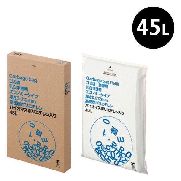 (セール)(セット品)ゴミ袋 乳白半透明 エコノミー 高密度(カサカサ)45L 1箱+1パック(計200枚)0.012mm アスクル オリジナル