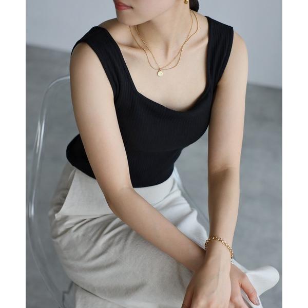 商品名:【Fizz/フィズ】 カップ付き スクエアネック ワイドリブタンクトップ