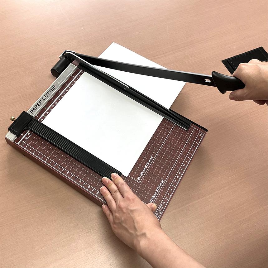 【明瞭な目盛り】目盛りとネジ仕様の 用紙抑えが付いているので、毎回同じサイズの用紙をカットできます。カットエラーを防ぐために印刷をガイドできます。