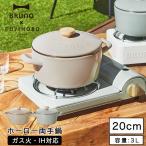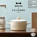 ブルーノ 両手鍋 20cm ih 【特典付き】 琺瑯鍋 琺瑯 ほうろう 深型 ガス火 ih対応 オーブン対応 天然木 直火 蓋付き おしゃれ かわいい 富士ホーロー 北欧 ギフト オール熱源 アウトドア[ BRUNO ホーロー両手鍋 20cm BHK280 ]