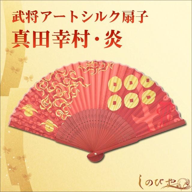 ■ 商品名 戦国武将 高級アートシルク扇子 『真田幸村・炎』 ■ 仕 様 素材:扇面:シルク 扇骨:竹 ■ サイズ 長さ22cm ★真田の赤い甲冑のイメージを炎で表現しました★普段使いはもちろん、着物・浴衣姿にもとても似合います。高級シルクでできているので破れにくく、耐久性に優れています。