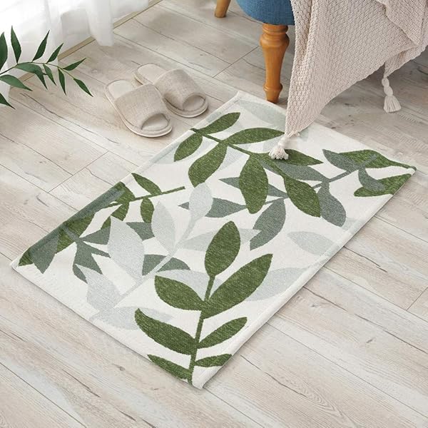 INSIMAN 玄関マット カーペット 屋外 屋内 清新リーフ 葉っぱ色 おしゃれ ドアマット 泥落とし ゴブラン織り すべり止め 洗える 床暖房対応 50 * 80cm 葉柄 業務用 家庭用 オフィス用