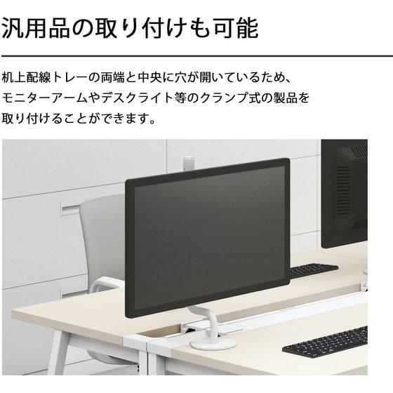 【商品説明】奥まで広々使える、カジュアルなシンプルデスク。 机上面奥の配線トレーと天板下のコード受けで、ケーブル類をすっきりとまとめられます。【仕様】●外寸法/幅1400×奥行700×高さ720mm●下肢空間寸法/幅1320×奥行645×高さ692mm●天板厚さ/25mm●天板下コード受け寸法/48mm●トレーブロック寸法/幅75x奥行き95x高さ25mm●材質/天板:(表面)メラミン化粧板(芯材)パーチクルボード(エッジ)樹脂(ABS)脚:(本体)スチール(焼付塗装)、樹脂(ABSPP)幕板:(本体)スチール(焼付塗装)、アジャスター:樹脂(エラストマ)、コード受け:スチール(焼付塗装)、樹脂パーツ:樹脂(ABS)●質量/約23.7kg●耐荷重/天板:約60kg●機能/アジャスター付き(床傾斜調整範囲18mm)●付属品/トレーブロック(2個入り)、六角レンチ(対辺4mm)●注文単位:1台