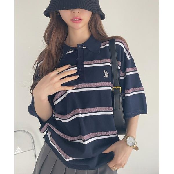 商品名:U.S. POLO ASSN. メッシュ ボーダー デザイン ニット ポロシャツ