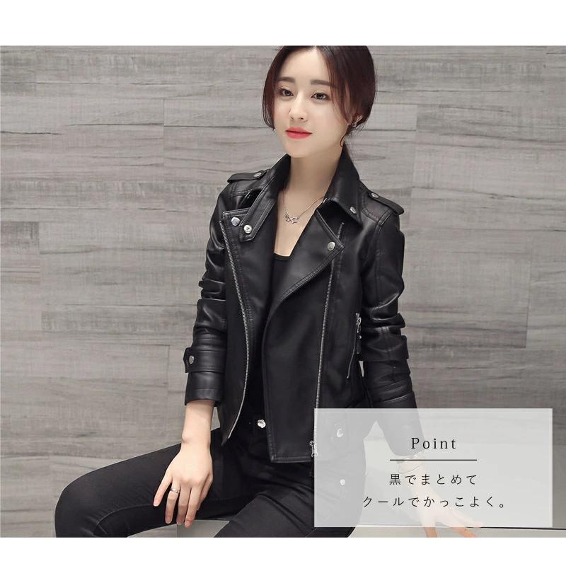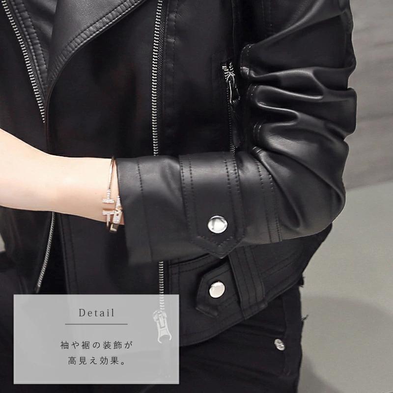 アウター ジャケット ジャンパー PUレザー ライダースジャケット レザージャケット ブルゾン バイク バイカー 大人女子 甘辛コーデ