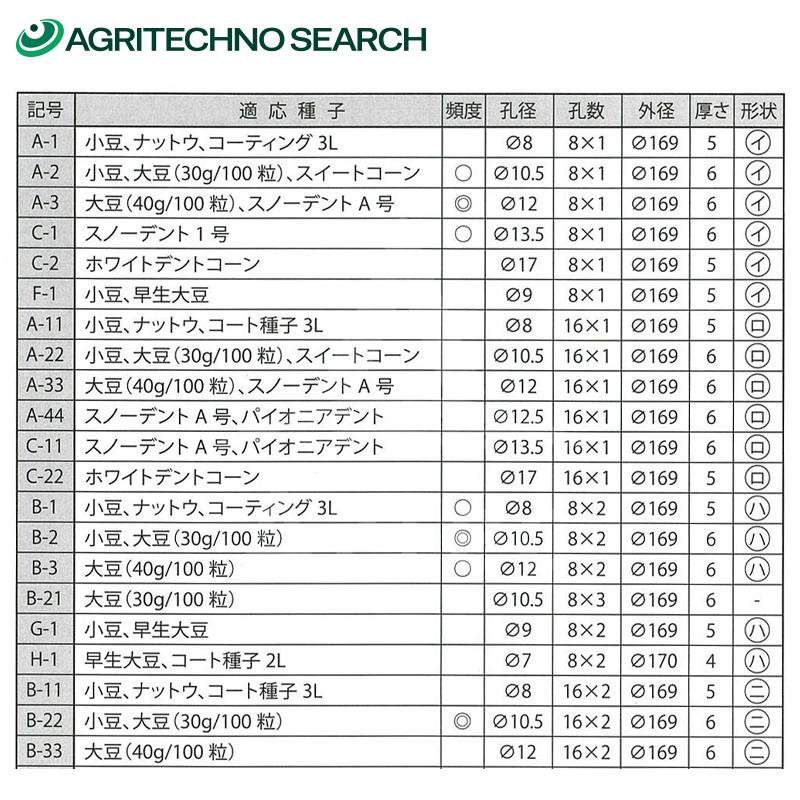 ●ひまわりの場合はW-1(小粒2〜3粒/穴)・W-2(長さ10〜11mm程度の種子)で使用できます。点播間隔はテープでふさぐ等で調整してください。