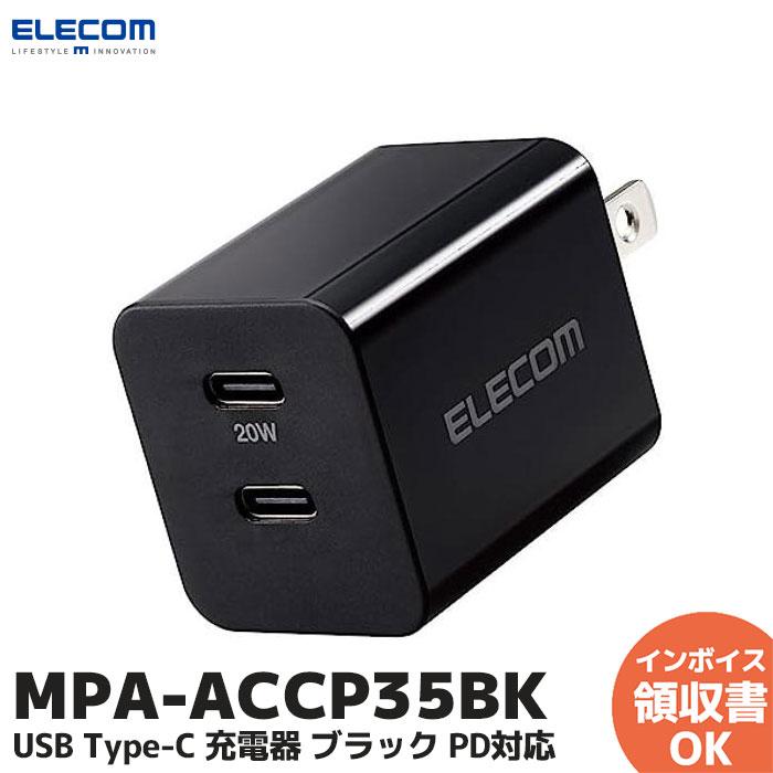エレコム MPA-ACCP35BK USB Type-C 充電器 ブラック PD対応 スイングプラグ 最大出力20W タイプC×2 小型 軽量 ELECOM