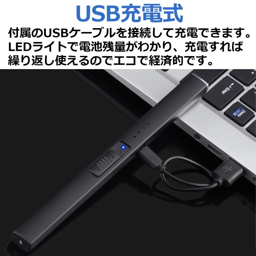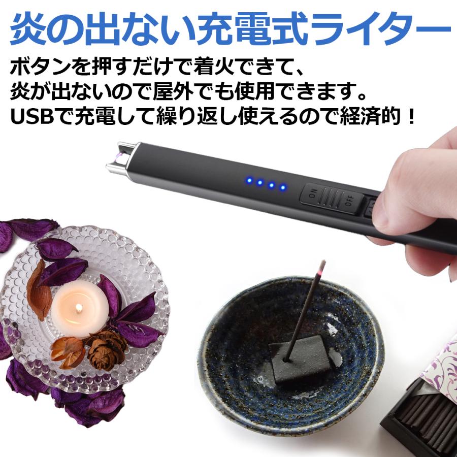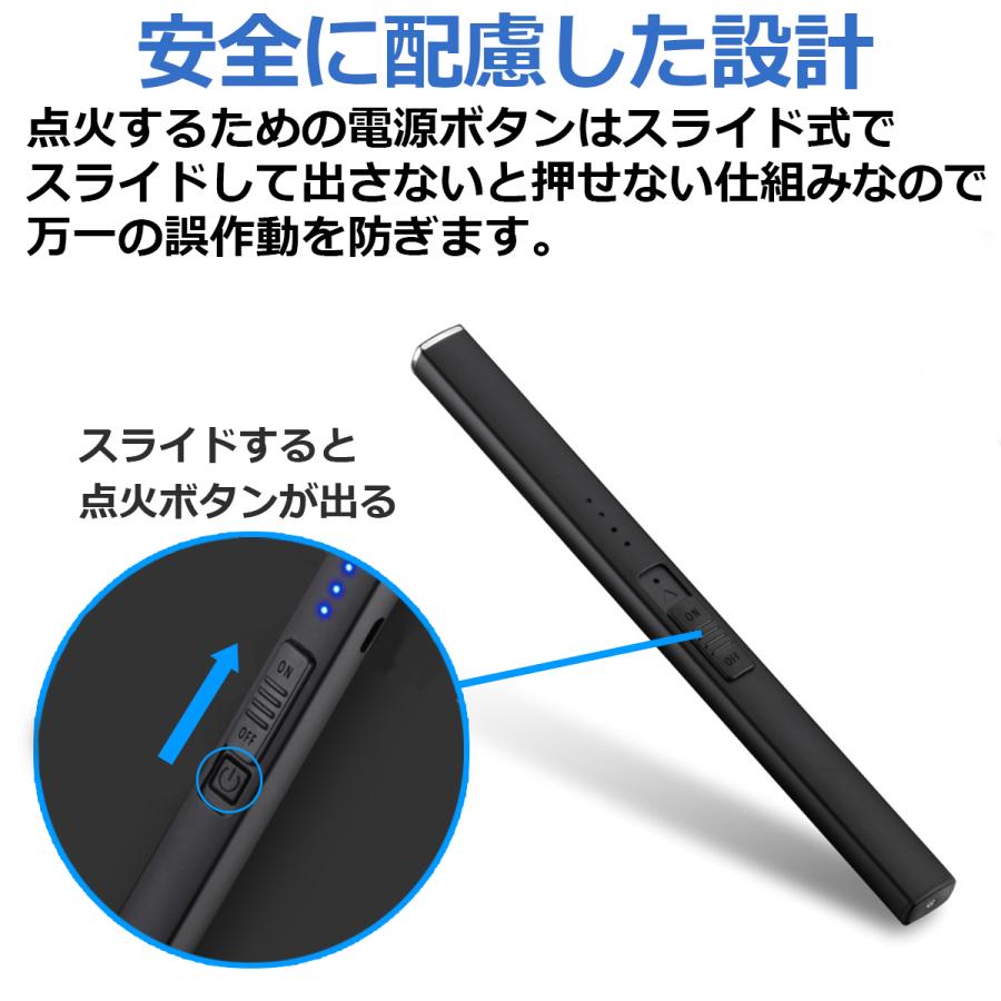 電源ボタンを押すとプラズマ(アーク)が発生しロウソクやお線香、