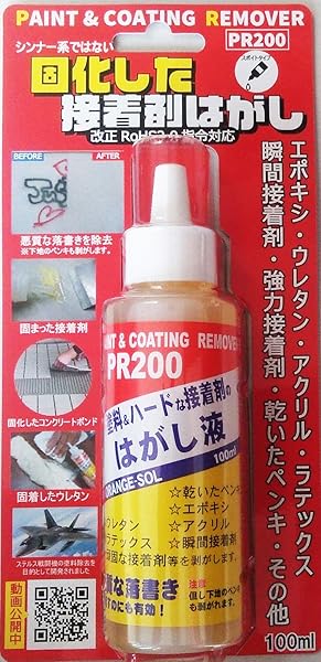 プロ仕様のはくり剤 固化した接着剤・乾いたペンキはがし PR200 100ml