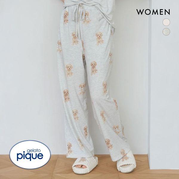 ジェラートピケ レディース トイプードル柄ロングパンツ ジェラピケ パジャマ ルームウェア gelato pique