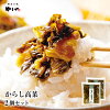 | 原材料 | 高菜、醤油、果糖ぶどう糖液糖、ごま油、食用植物油脂、食塩、米酢、昆布粒、唐辛子、鰹節粉末、酵母エキス、ごま、鯖節粉末、うるめ鰯節粉末、焼あご粉末、椎茸粉末、pH調整剤、着色料(ウコン) |