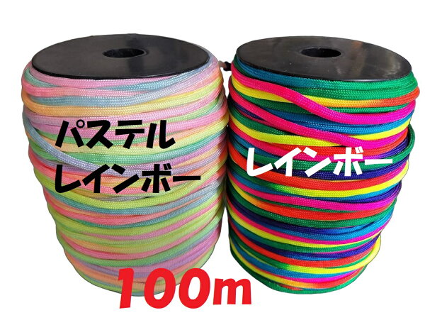 ◆ 虹色 七色 レインボー パラコード Φ 4mm 100m カラフル きれい な ひも テント ロープ ガイ ロープ 7芯 耐荷重 25…