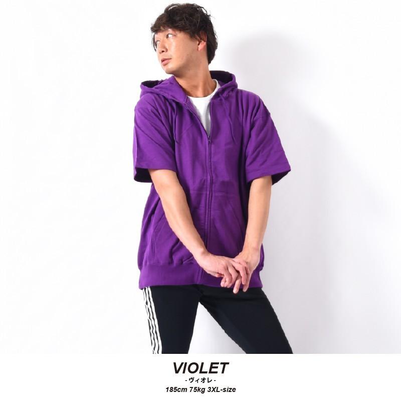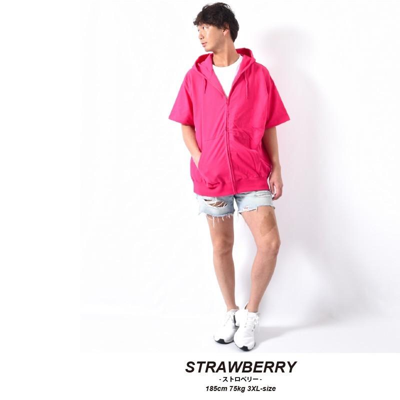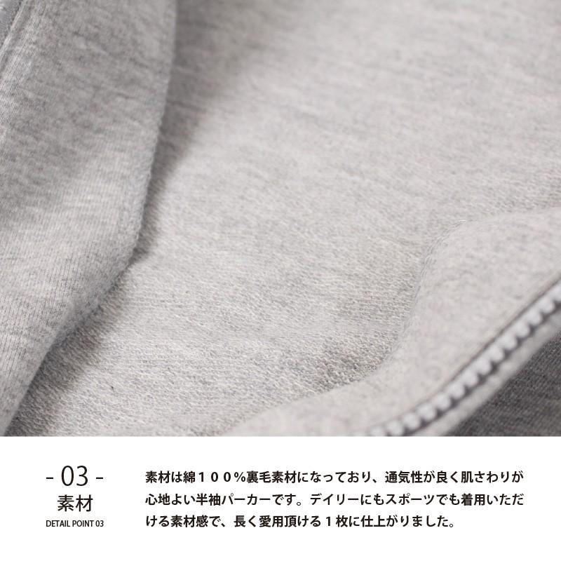 パーカー パーカ 無地 メンズ 半袖ジップパーカー