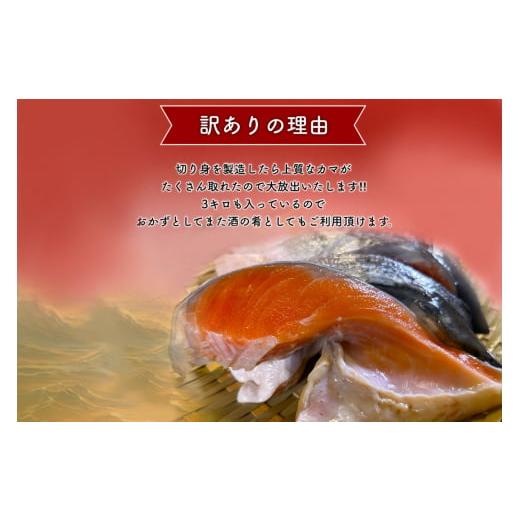 容量■お礼品の内容について・銀鮭カマ[約3kg×1] 原産地:チリ/製造地:千葉県いすみ市■原材料・成分銀鮭(チリ産・養殖)、食塩/酸化防止剤(ビタミンC)*一部にさけを含む消費期限■賞味期限:製造日から365日発送期日2026-03-01より順次発送予定 ※離島にはお届けできません。配送冷凍 別送申込期日通年事業者株式会社 西川(いすみ市)申込条件何度も申し込み可