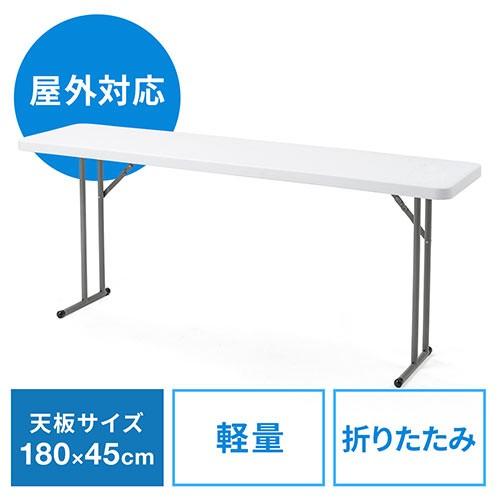 折りたたみテーブル 会議テーブル 天板180cm・45cm 樹脂天板 軽量 屋外対応 EZ1-FD017W
