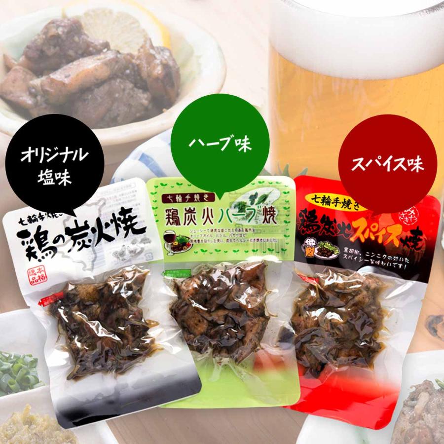 「宮崎名物 七輪手焼き 鶏の炭火焼 お試しセット A」は3種類の味のお試しサイズのセットです。「からあげグランプリ」受賞経験をもつ「宮崎かしわや」を直営する平和食品工業は宮崎のご当地グルメである鶏料理に強いこだわりがあります。この鶏の炭火焼は、ジューシーな国産の鶏肉を食べやすい大きさにカットし、熟練の職人が大型の七輪でじっくりと手焼きしました。