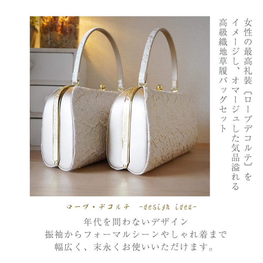 女性の最高礼装であるローブデコルテを草履バッグにオマージュした逸品です。