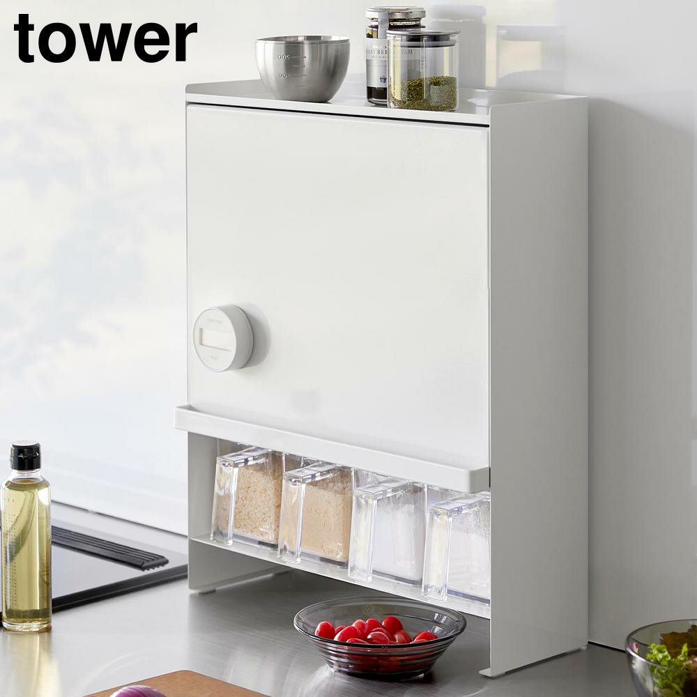 調味料入れ [前が開く 隠せる調味料ラック タワー] tower [山崎実業] 調味料収納 隠す 扉付き 薄型 スパイス 液体調味料 ケース ボックス キッチン コンロ横 スリム ホワイト ブラック 2009 2010【Glad Life】【ポイント5倍】