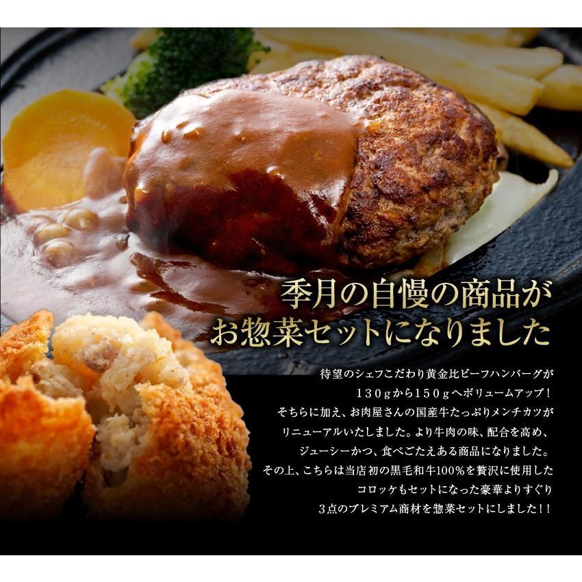 【プレミアムセット】遂に登場!当店大人気のシェフこだわり黄金比ハンバーグ4個、黒毛和牛たっぷりメンチカツ4個、そして新商品黒毛和牛コロッケ4個の贅沢な惣菜セット♪お肉屋さん本気の惣菜セットに食卓が笑顔に包まれる事間違いなし!お試しセットで1kgオーバーのボリュームに加え送料無料でお届けします。・黄金比ハンバーグ4個・黒毛和牛たっぷりメンチカツ4個・プレミアム黒毛和牛コロッケ4個