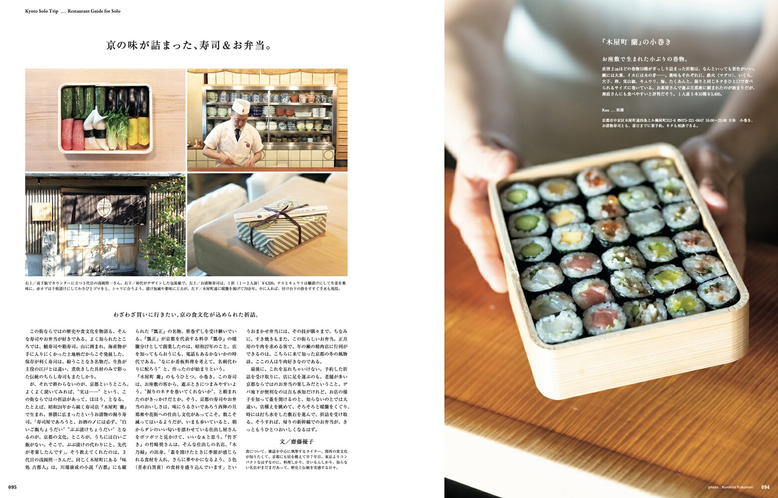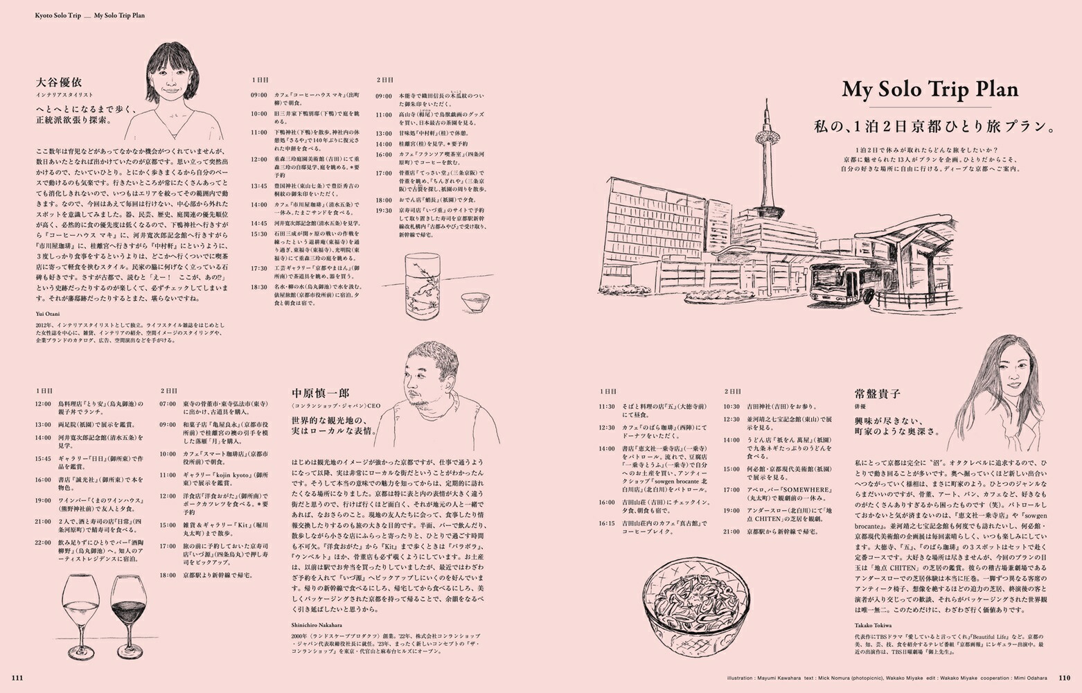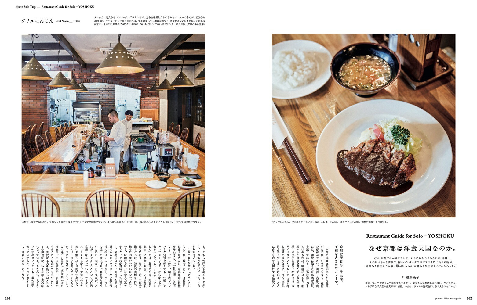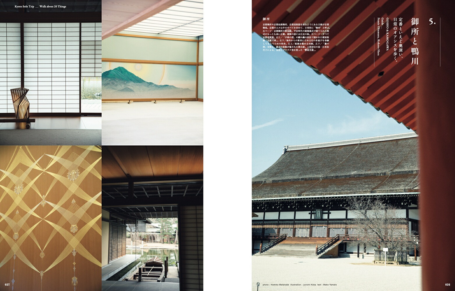 ※本誌は『&Premium』2023年4月号の特集「ひとりでも、京都」、2024年4月号の特集「やっぱり、ひとりでも京都」を再編集・増補改訂したものです。掲載情報は2025年1月24日現在の編集部調べです。&Kyotoひとりでも、京都へ。雑誌「&Premium」発の京都ガイド。朝の楽しみ、あんこ、コーヒー、鴨川…、現地在住のガイドが案内する、ひとりでも巡りたい“ふだんの京都”100スポット。和食、麺、弁当…ひとりごはんアドレス。京都旅“あるある”お悩みを解決する便利帖も。004 Kyoto Solo Trip ひとりでも、京都へ。 006Walk about 20 Thingsひとり、京都を巡りたくなる20のこと。 1. 朝 2. 器ギャラリー 3. モダン建築 4. ヴィンテージショップ 5. 御所と鴨川 6. あんこ 7. パン 8. 音楽に出合える場所 9. 道具 10. コーヒー 11. 心が整う場所 12. お茶の時間 13. 暮らしのギャラリー 14. 庭 15. 本のある場所 16. 叡電と嵐電 17. 古い器 18. サウンドスケープ 19. 焼き菓子 20. ワイン 086 Restaurant Guide for Solo 京都、ひとりごはんアドレス。 京の朝ごはん。 自由を満喫する夜ごはん。 寿司&お弁当。 京都の麺は奥深いどすえ。 なぜ京都は洋食天国なのか。 京で和食を食べるなら。 110 My Solo Trip Plan 私の、1泊2日京都ひとり旅プラン。 常盤貴子 大谷優依 中原慎一郎 平井かずみ 酒井順子 堀 道広 鳥飼 茜 ウー・ウェン 松村圭一郎 岡本ゆかこ 石井佳苗 大西麻貴 皆川 明 117Kyoto Strolling Guide京都さんぽの定番&寄り道スポットガイド。126&Kyoto Special大和まこの京都さんぽ部スペシャル#1 ひとり、京都を巡りたくなる10のこと。 #2 続・ひとり、京都を巡りたくなる10のこと。#3 ごはんお助けアドレス。 #4 ひとやすみアドレス。 #5 お土産帖。 #6 新旧お土産帖。139Good Luck Charmめでたい縁起物に出合う、京都旅。