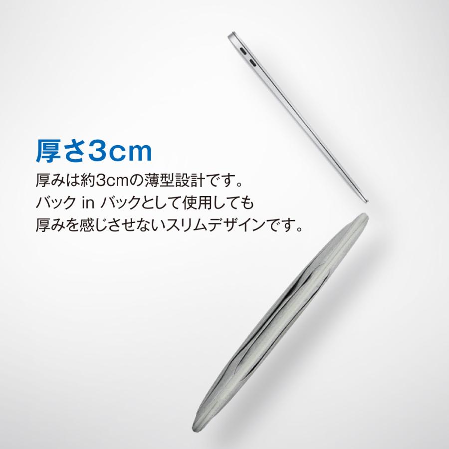 【厚さ3cm】厚みは約3cmの薄型設計です。バッグinバッグとして使用しても厚みを感じさせないスリムデザインです。