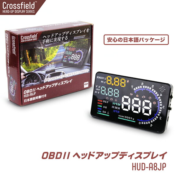 Crossfield 日本語パッケージ 後付け 車載 ヘッドアップディスプレイ スピードメーター タコメーター HUD OBD2 走行距離 ディスプレイ表示 A8