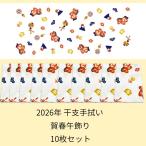 10枚セット 2026年 干支手拭い 午 賀春午飾り お正月 縁起柄 手ぬぐい 34x90cm 日本手拭い 日本製 お配りギフト