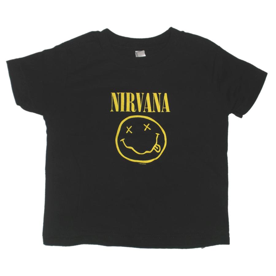 ニルヴァーナ物の中でも最も人気の高いデザイン、カートが描いたSMILEマークのキッズTeeです。