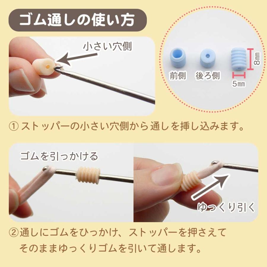 手作りマスクは何度も繰り返し使えるけど、ゴムの長さがだんだん合わなくなってきた。。。人にプレゼントするマスクのゴム紐の長さをどうすればいいか悩む。。そのような時にゴムストッパーが活躍します!摘まみやすい横長形状のストッパーでどなたでも簡単に調節可能♪