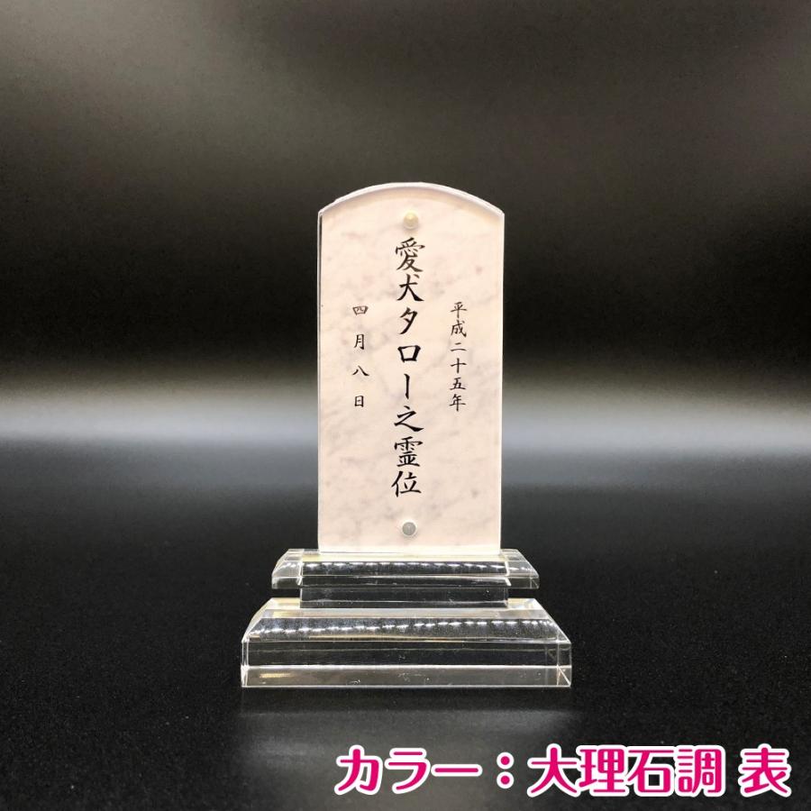 ペットのための名入れサービス付の位牌セットです。家族でいてくれた大切な日々の思い出の証に。<商品名>ペット用 名入れ位牌付<商品内容>・お位牌サイズ:横6cm(台座部分)3.5cm(位牌部分)×高さ9cm×奥行き2cm材質:透明アクリル樹脂、磁石カラー:大理石調・ベージュ・ピンク『文字入れについて』お入れする場所によって文字入れ可能な文字数がございます。数字は漢数字のみとなります。ご了承くださませ。