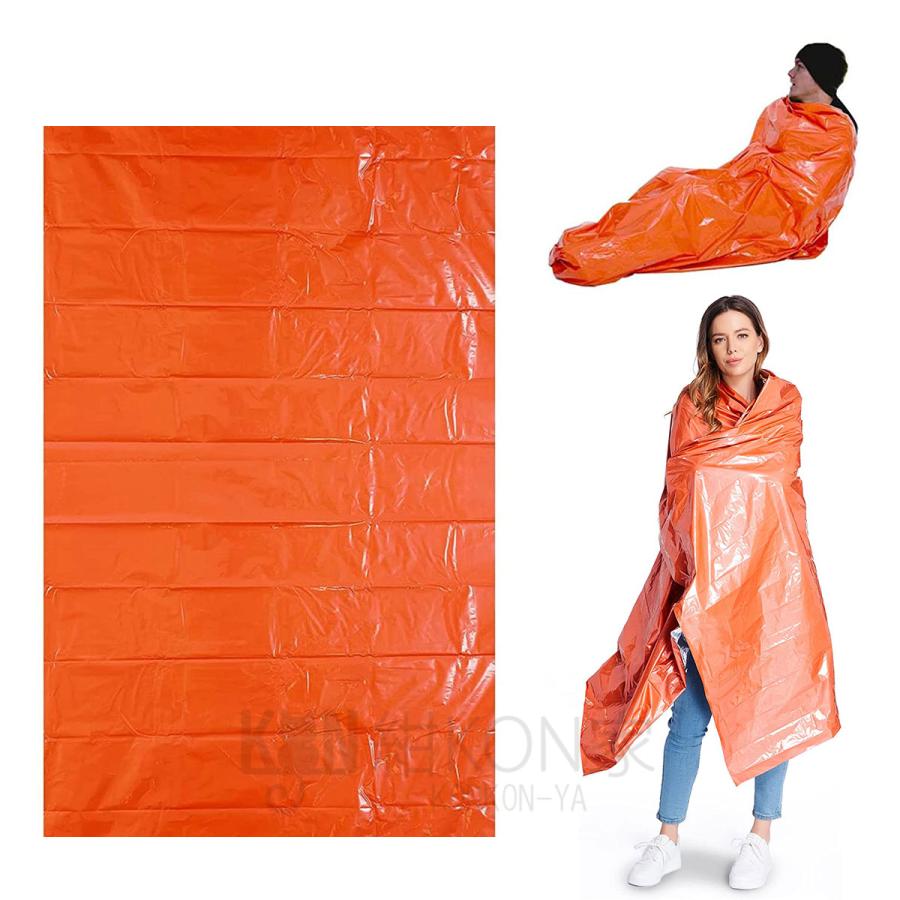 緊急時、非常時の気温の変化や雨風から身を守る防寒用シートです。破れにくいポリエチレン製素材を使用し、内側はアルミコーティングを施したことで、防寒、防風、保温効果があります。